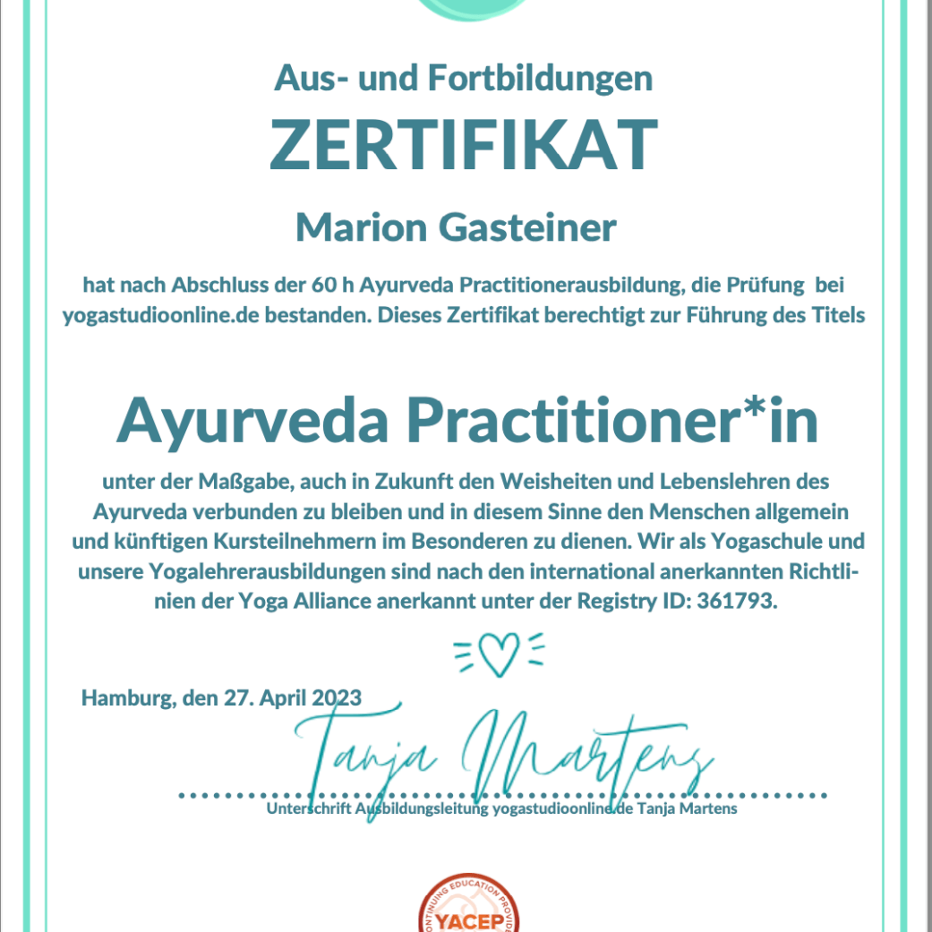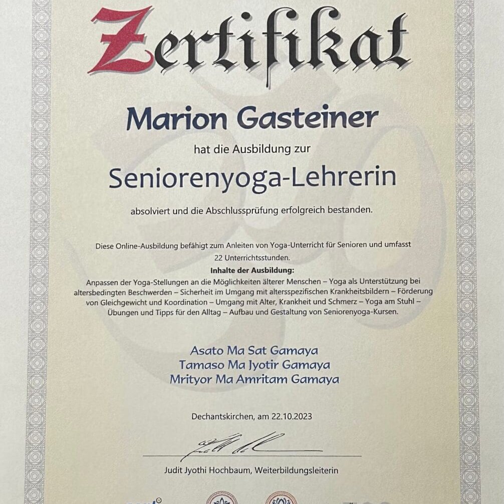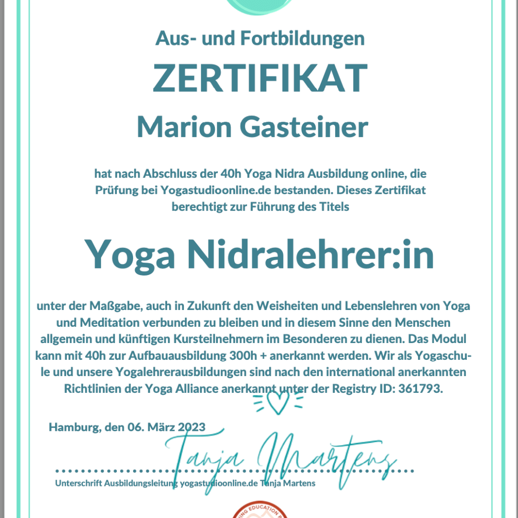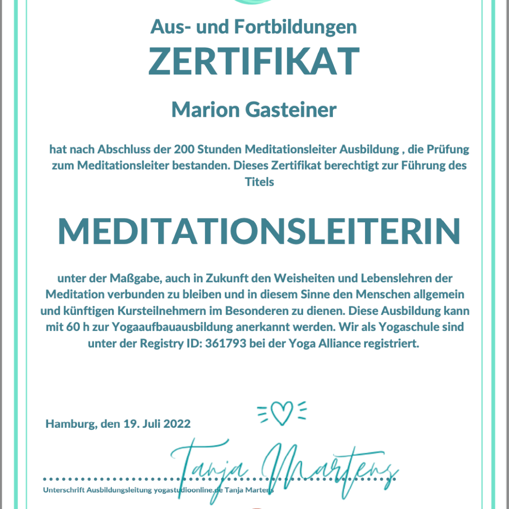 Generell denke ich, dass die Chemie zwischen Klienten und Yoga-Lehrerin/Energetikerin passen muss, daß man sich wohl fühlen soll bei der Einheit. Aber selbstverständlich ist es auch wichtig, daß man sicher sein kann, daß die Yoga-Lehrerin/Energetikerin weiss, wovon sie spricht, wie sie arbeitet und unterrichtet. Daher zeige ich Dir hier, welche Ausbildungen ich bereits absolviert habe.